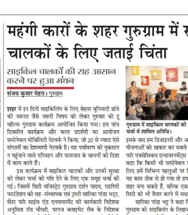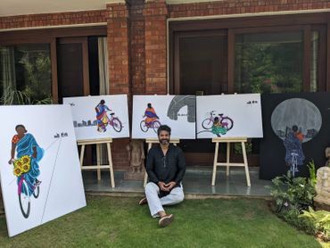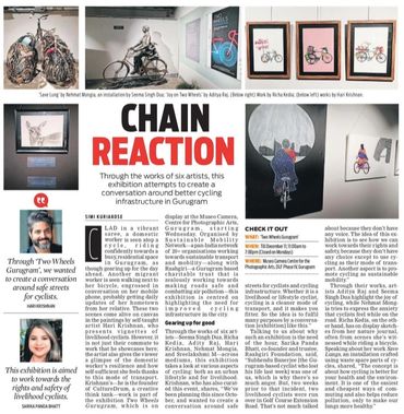 An exhibition that explored the need for improved cycling infrastructure in the city through art. Artists whose works were exhibited were Hari Krishnan, Seema Singh Dua, Nehmat Mongia, Richa Kedia, Aditya Raj Shekhawati, Anirudh Krishnan and fimmaker Sreelakshmi M.